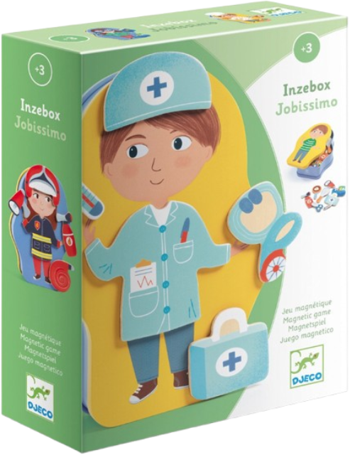 O parte a cutiei arată un băiat, iar cealaltă o fată, astfel încât copiii să le îmbrace pe amândouă. Inzebox este un joc distractiv de amestecare și potrivire cu magnet.