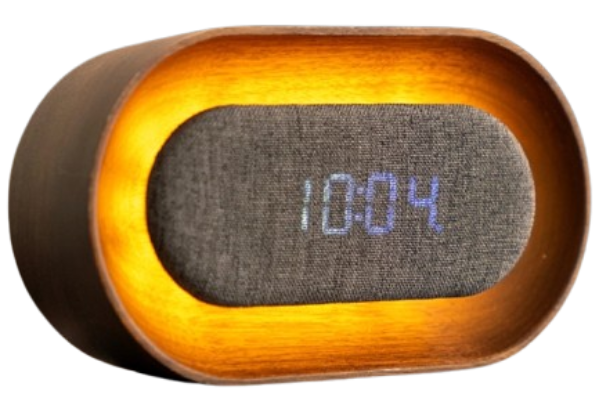 Ceasul oval Lumos de la Gingko combină un design elegant și modern cu o funcționalitate practică, ceea ce îl face ceasul deșteptător ideal. Ecranul din material textil moale se armonizează frumos cu rama din lemn masiv, creând un aspect modern, dar natural, care completează orice interior.