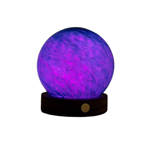 Cufundă-te într-o lume a culorilor cu ajutorul lămpii noastre AstraGlass, suflată și pictată manual, într-un mod rafinat. Pe măsură ce nuanțele RGB se schimbă, această sferă de sticlă artizanală se transformă, dezvăluind un aspect vizual nou și uluitor cu fiecare schimbare de culoare.