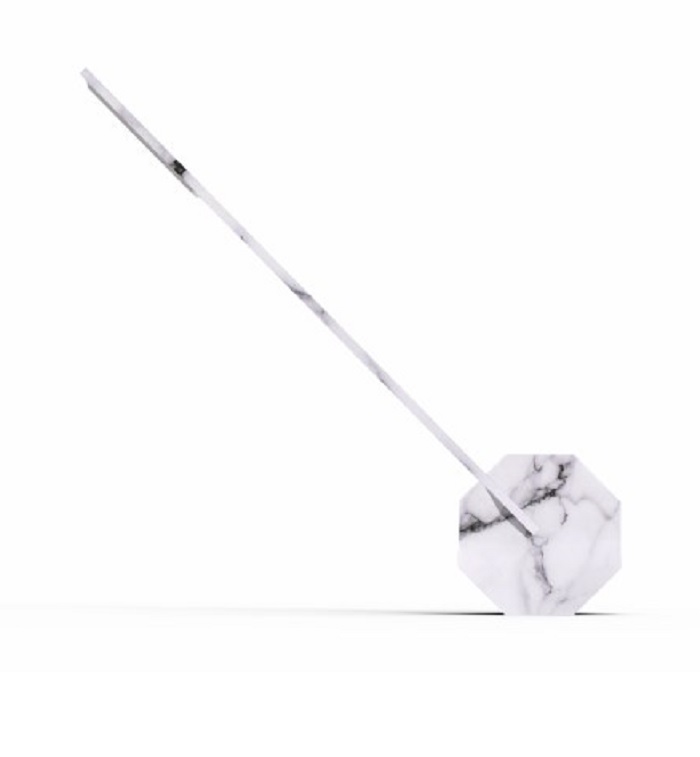 Lampa de birou portabilă Octagon One combină tot ce este mai bun din finisaj simplu și natural cu efect de marmură pentru a-și atinge efectul estetic modern industrial.