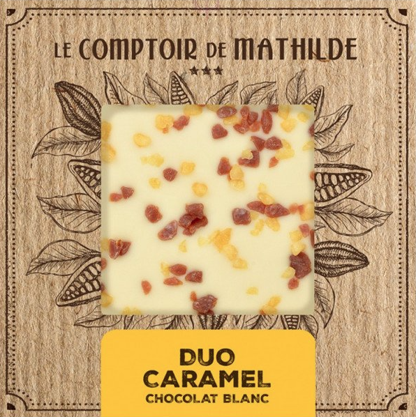 Savurează alianța voluptuoasă a ciocolatei noastre albe cu un duo de caramel.