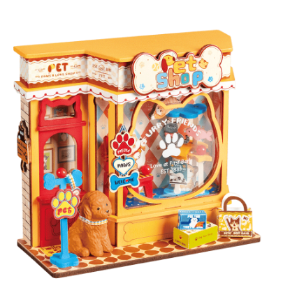 Transformă orice raft într-un colț plin de farmec cu Rolife Pawfect Pet Shop o miniatură DIY adorabilă inspirată de un mic boutique pentru animale.