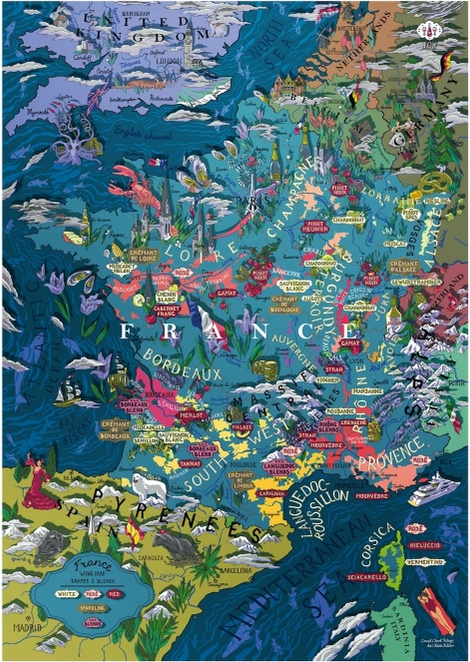 Desenată manual cu rafinament, imprimeul nostru artistic exclusiv al Franței prezintă principalele regiuni viticole ale țării, soiurile cheie de struguri și apelațiile renumite. Această hartă frumoasă a fost realizată meticulos cu ajutorul unora dintre cei mai buni somelieri din lume.