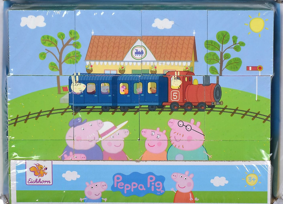 În funcție de modul în care sunt întoarse blocurile, micuții fani Peppa pot explora unul dintre cele 6 motive colorate